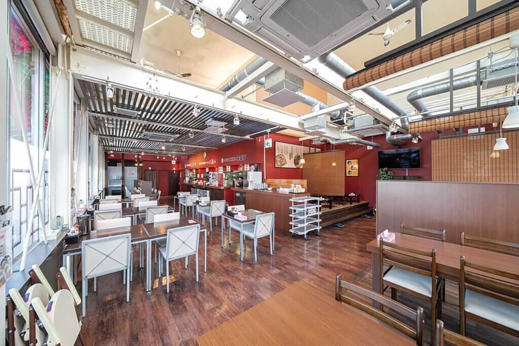 こちらは一つの建物に多数のお店が集合したフードコートのような営業スタイル。「三椒」はショウガじょうゆに山椒やコショウでパンチをプラスしたラーメンを、「たねや」は基本の白、マー油を浮かべた黒、辛みの強い赤と3種のちゃんぽんを提供。「元気亭」の鉄板焼きは、味付けをしょうゆかみそから選べます。