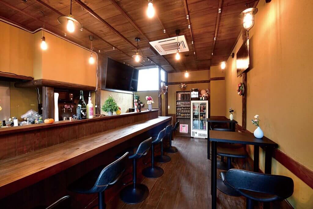 深みのある色調が落ち着く店内。一人でも友人と語らいながらでもゆったり過ごせます。