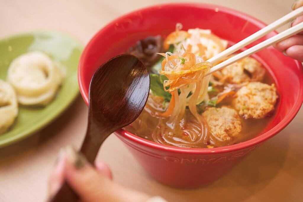 近年人気の麻辣湯や火鍋、酸味を利かせたトムヤムクン、コク深いトマトスープなど、提供するスープは全6種類。うち3種類は鶏つみれや豚バラなどプラスする具材を選べます。なかでもイチオシは、野菜の甘みが引き立つ上品なだしに、8種の野菜が入った極みだしスープ定食。ご飯と相性抜群のスープが優しくおなかを満たしてくれます。
