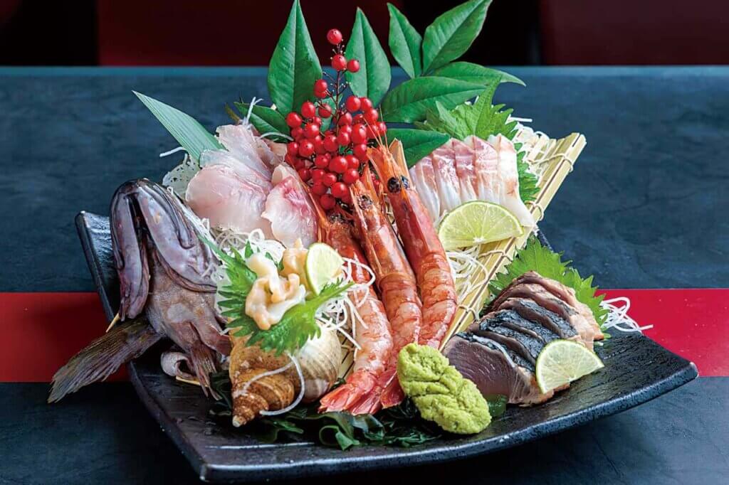 その日のおすすめ鮮魚が美しく盛り付けられた、お刺身盛り合わせ2〜3人前(1,980円※ディナー)。