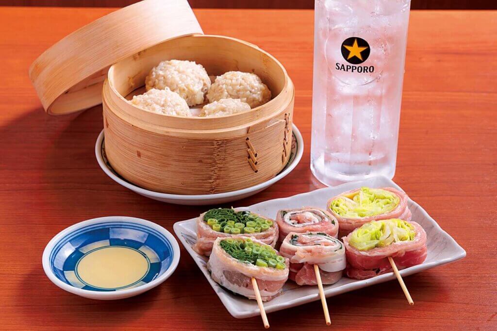 名物の野菜串巻きに加え、店仕込みの鶏シューマイも味わえる新潟駅南口店でワイワイと楽しんでみてはいかがですか。
