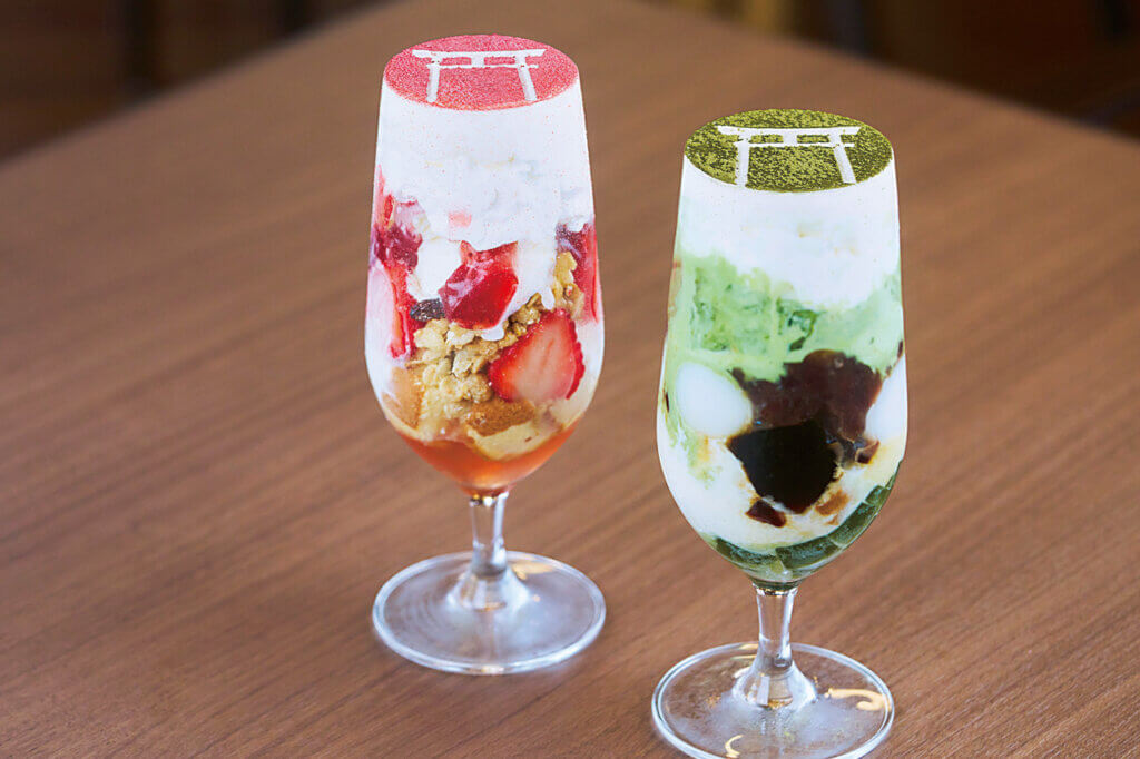 1701年創業の老舗旅館「四季の宿みのや」に併設するカフェ。彌彦神社の大鳥居がモチーフになったフォトジェニックなスイーツや、弥彦産小麦・ゆきちからを配合した、冷めてももっちりとした食感が楽しめるパスタなど、地元の魅力や食材を生かした自慢のメニューを提供している。大正ロマンをオマージュしたノスタルジックな空間で、優雅な時間を過ごせそう。