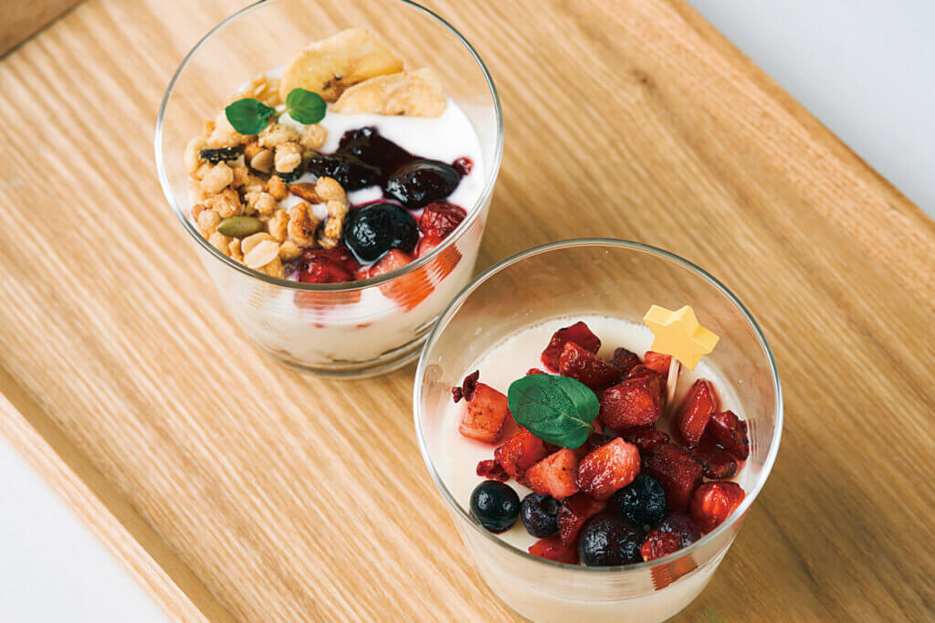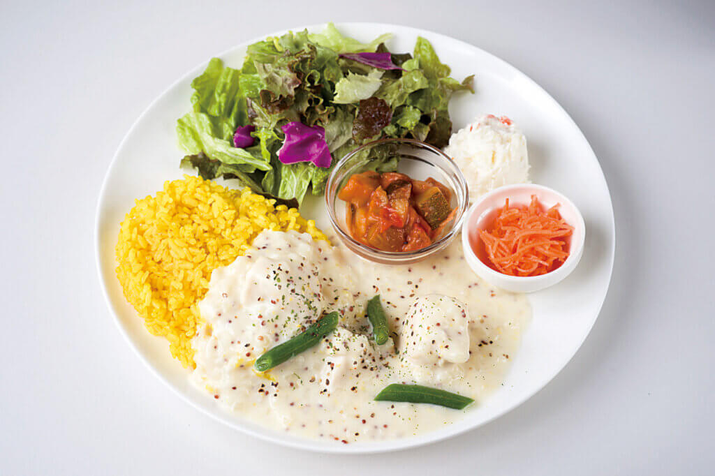 なかでもおすすめは、管理栄養士監修の野菜たっぷりプレート。2種の定番と1種の期間限定から選ぶことができ、彩り豊かでボリュームも満点。ランチタイムには、野菜のスープとお茶が付くのもうれしい。