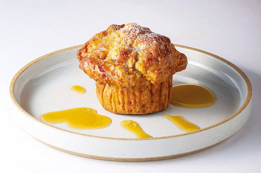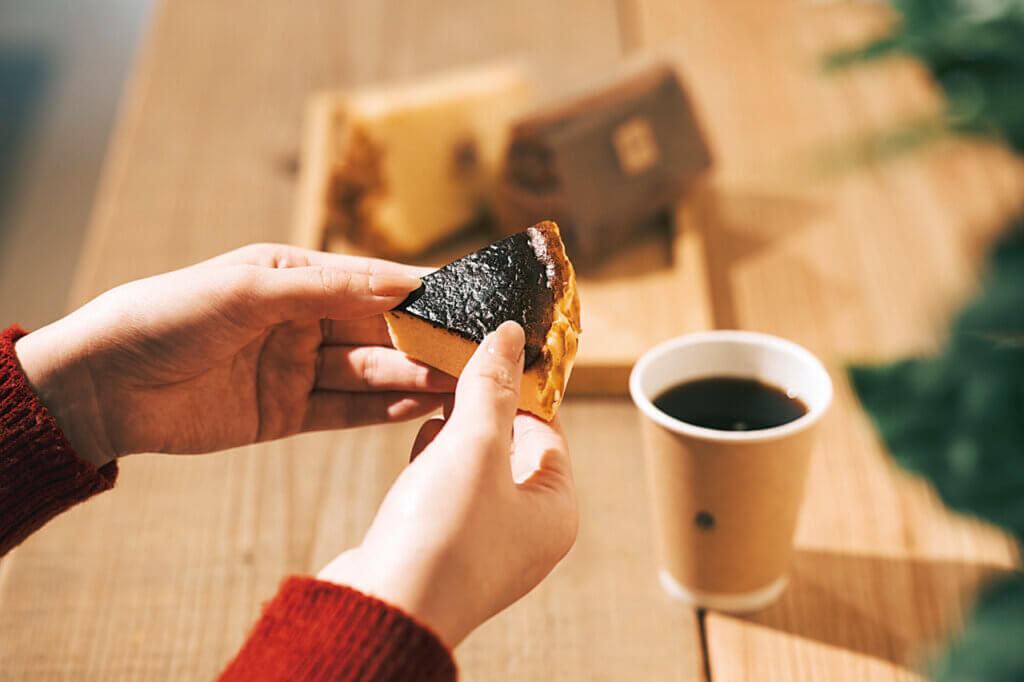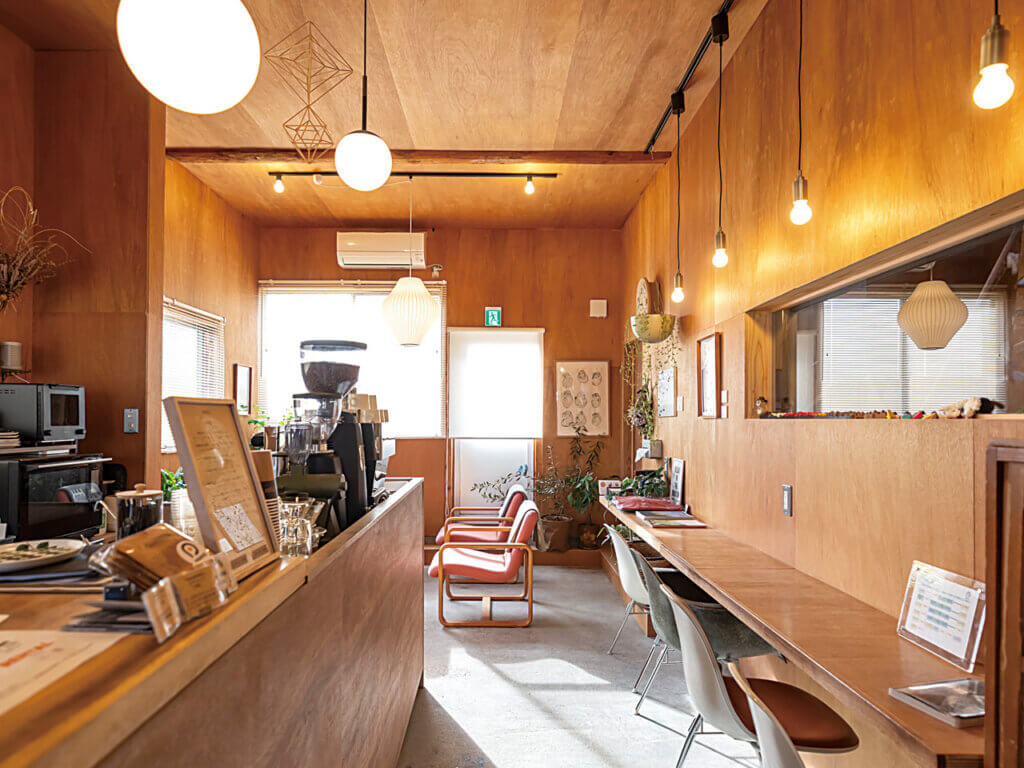 「燕市吉田産業会館」の一角をカフェにリノベーション。カウンターの天板にJR燕三条駅の改修工事で使用された材料を再利用していたり、「熊倉シャーリング」から調達した金属の抜き型でキッチンの壁を装飾していたりと、店内には燕市ならではの魅力が満載。イートインはもちろんテイクアウトもできるので、チーズケーキやシフォンケーキなどのスイーツとともに、さまざまな使い方で楽しんで。